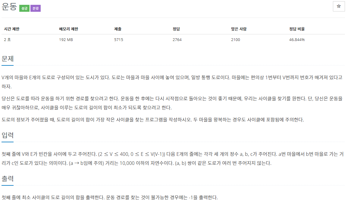 BOJ : 1956 운동 (https://www.acmicpc.net/problem/1956)