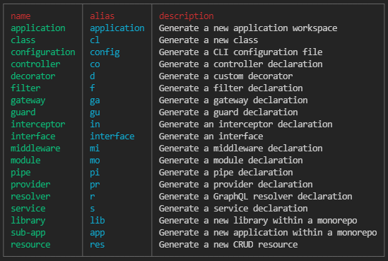 NEST CLI의 명령을 확인하고 싶으면 커맨드 라인에 nest 를 입력하면 된다.